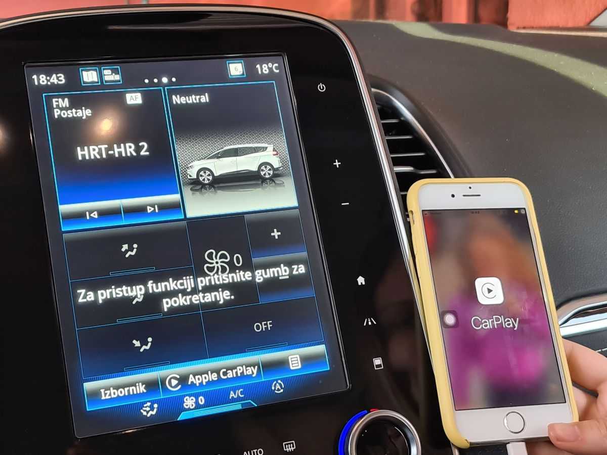 Na 20-inčnim kotačima Renault je u Grand Scenicu ponudio izuzetno bogat multimedijski paket. Isprobali smo spajanje pametnih telefona sa sustavima Android i Apple iOS