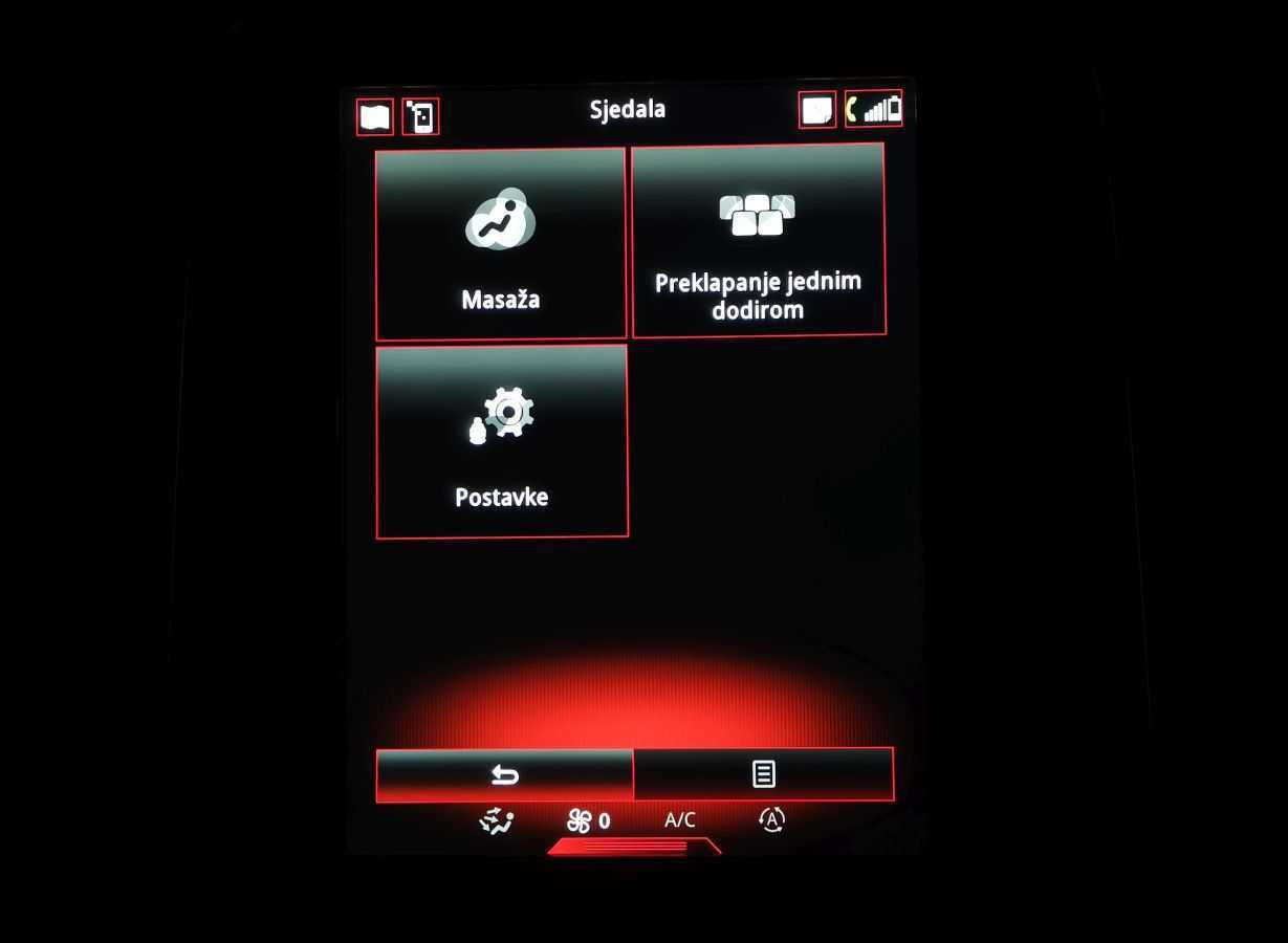 Inicijalno, Grand Scenic koristi R-Link 2 multimedijski sustav unutar kojeg se putem 8,7 inča dijagonale ekrana u boji osjetljivog na dodir nudi gotovo sve što vam danas može ustrebati. Od TomTom navigacije s kartografijom cijele Europe, spojenog telefona do upravljanja masažom na prednjim sjedalima obloženima Nappa kožom koja su i električno podesiva, a vozačko sjedalo nudi i pamćenje pozicije.